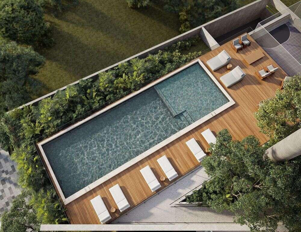 Com apenas duas unidades por andar, o projeto garante ventilação cruzada em todos os ambientes, proporcionando conforto térmico e uma atmosfera leve e contínua.