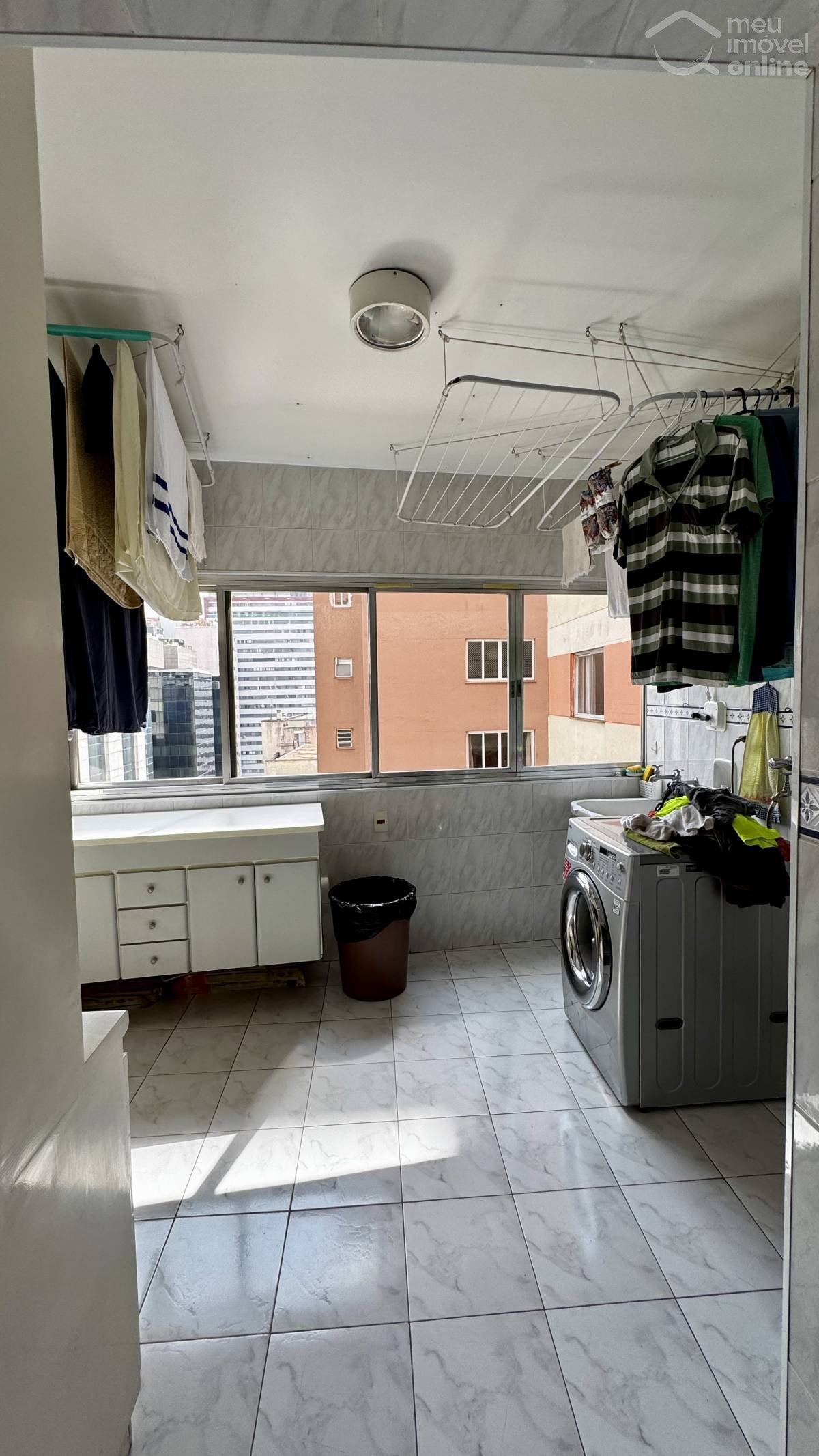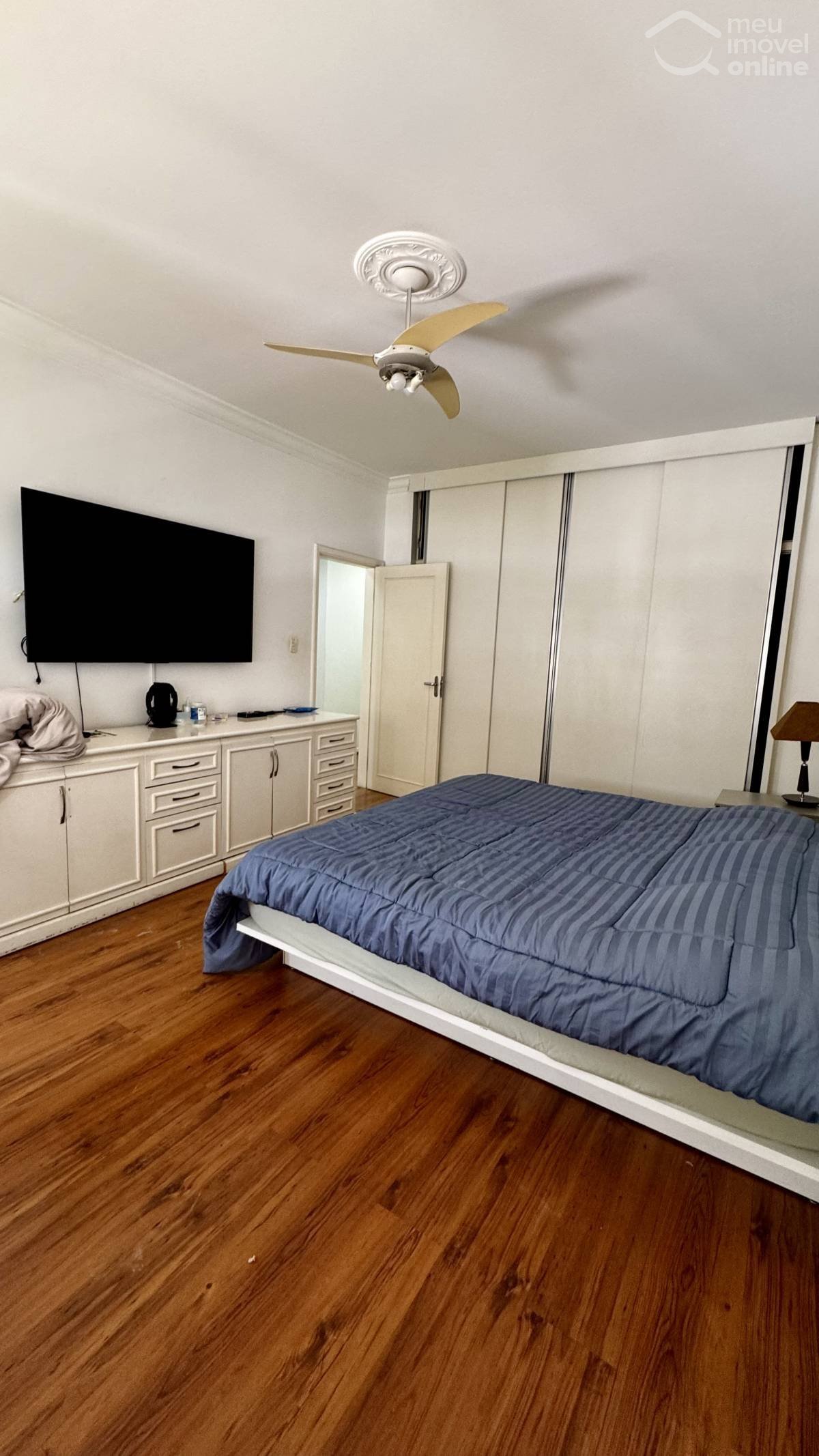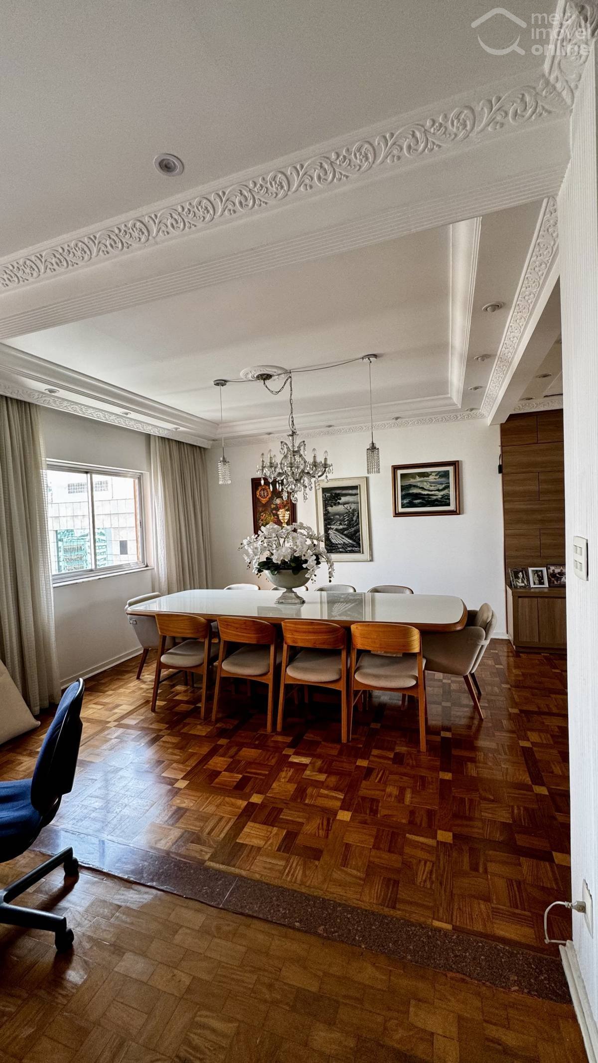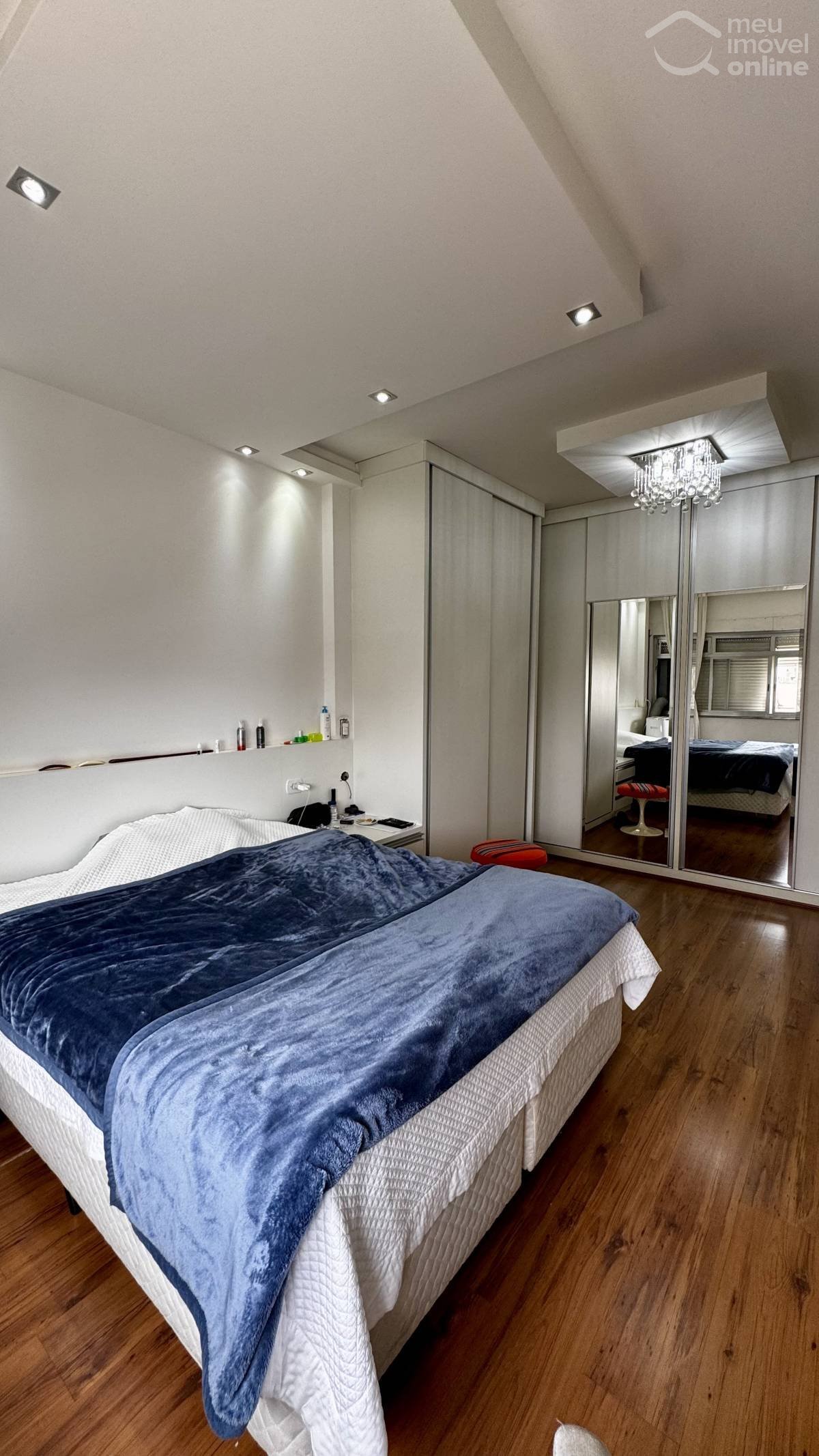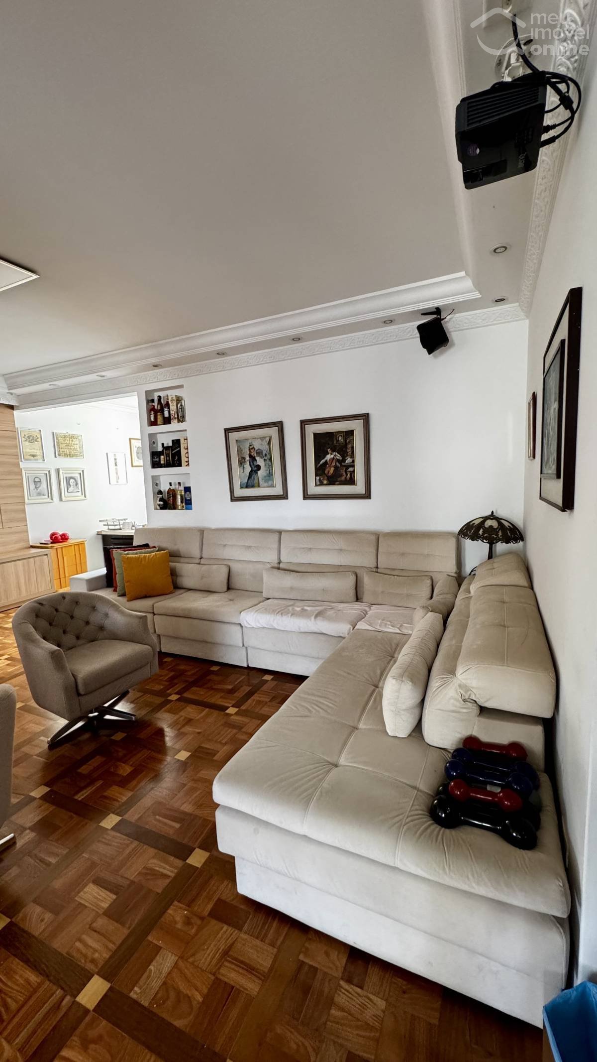 Amplo apartamento com 200m², 3 dormitórios espaçosos para cama kingsize, armários grandes e piso laminado; sala de estar ampla com piso em taco; cozinha e lavanderia generosas; dependência e banheiro de serviço. Possui 2 vagas de garagem grandes que cabem até 3 carros.