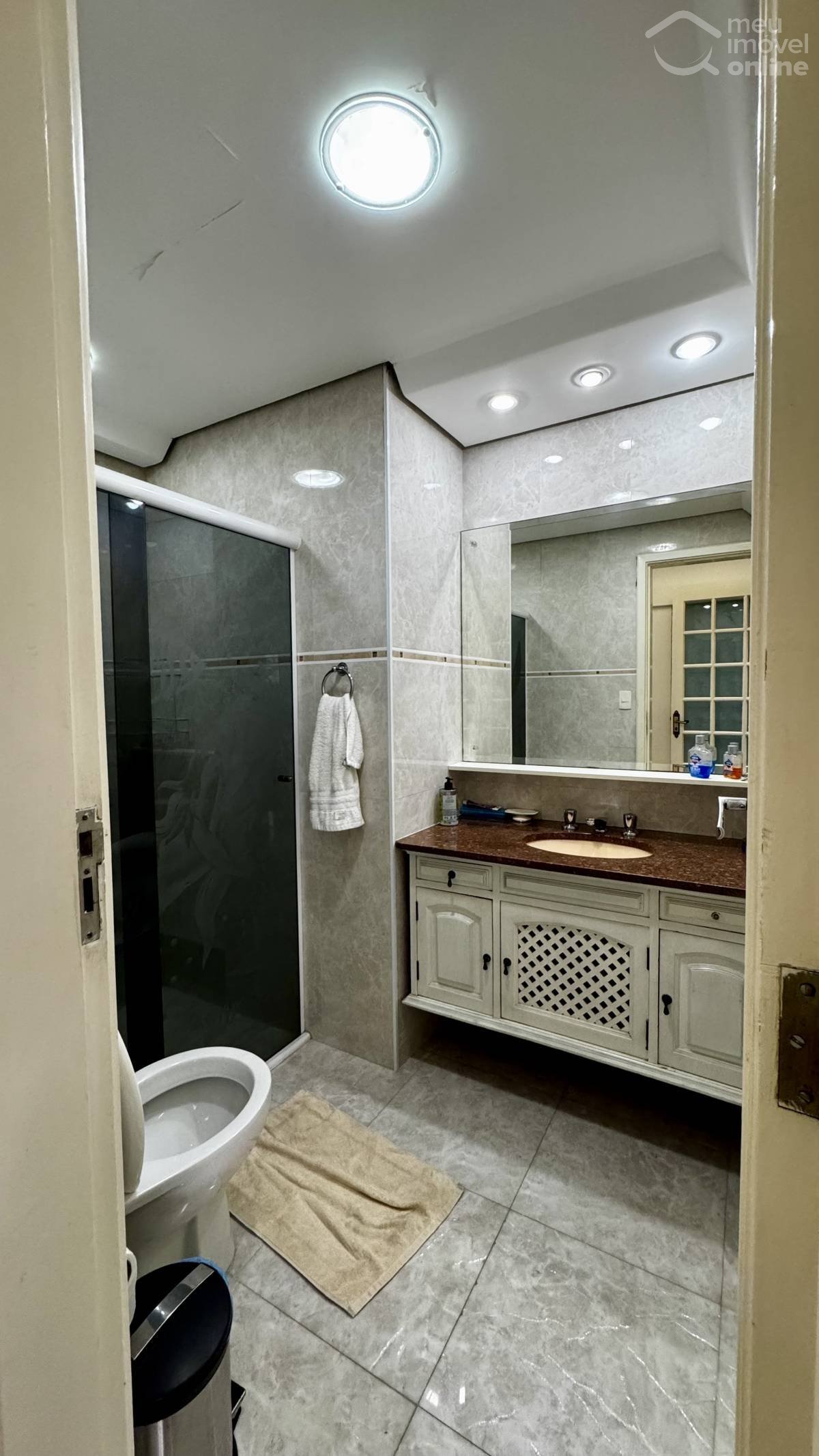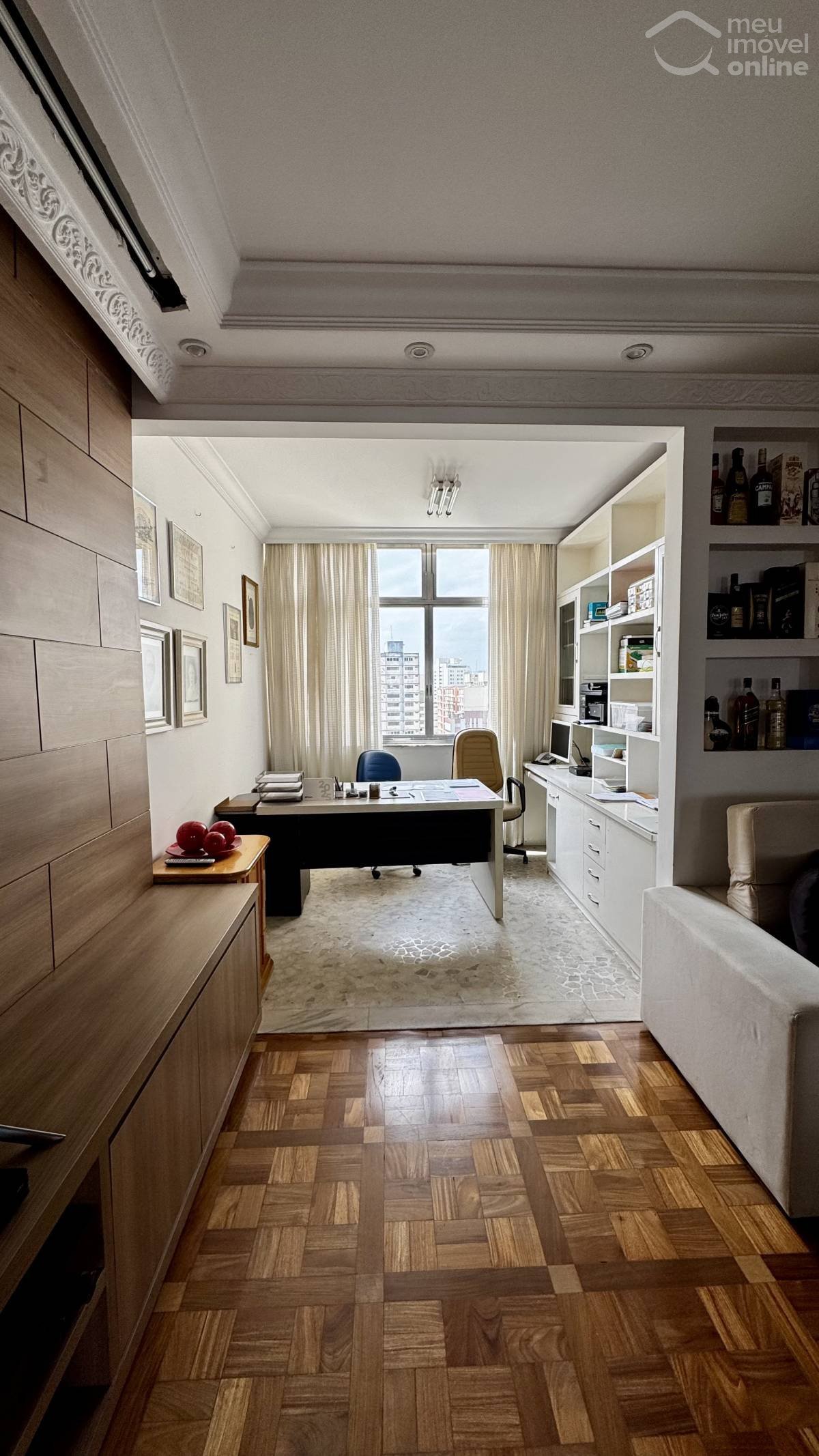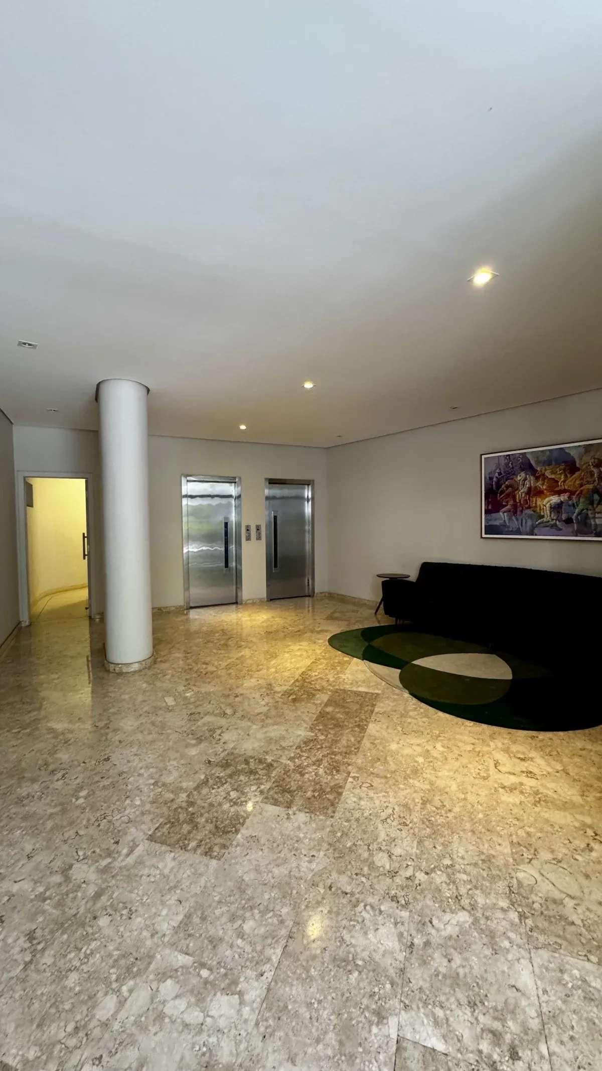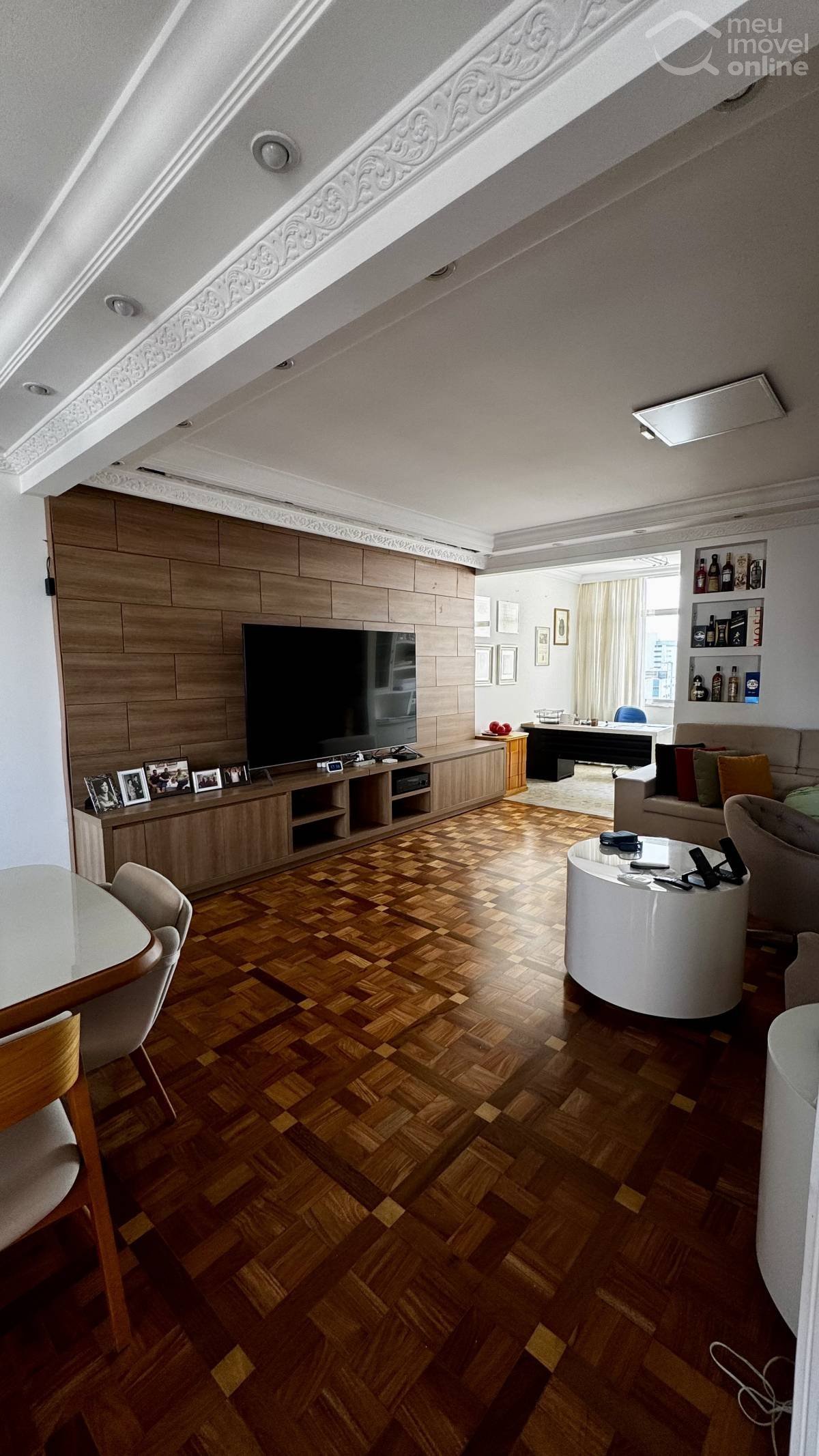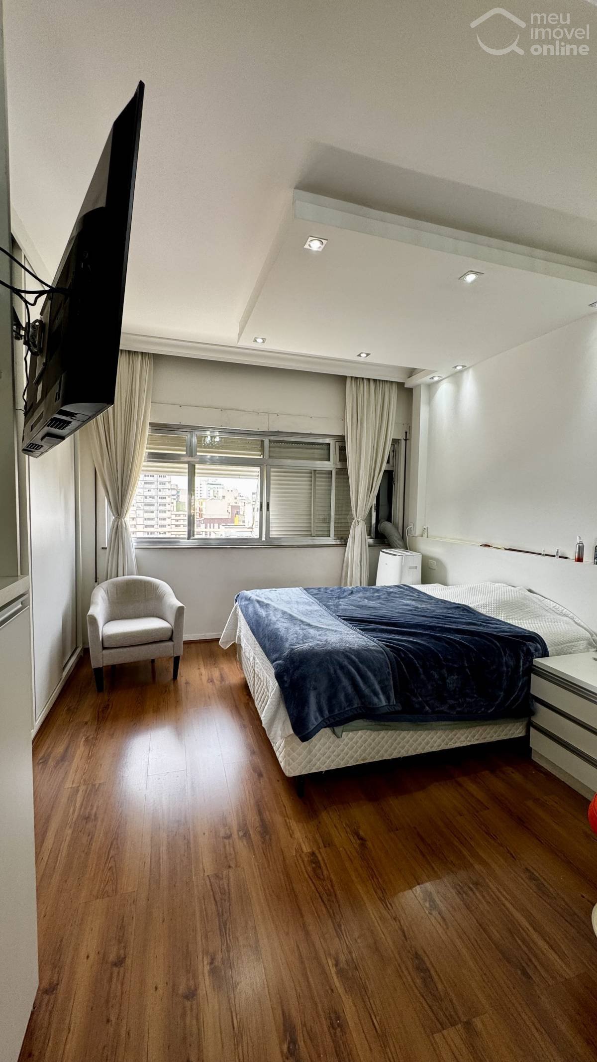 Amplo apartamento com 200m², 3 dormitórios espaçosos para cama kingsize, armários grandes e piso laminado; sala de estar ampla com piso em taco; cozinha e lavanderia generosas; dependência e banheiro de serviço. Possui 2 vagas de garagem grandes que cabem até 3 carros.