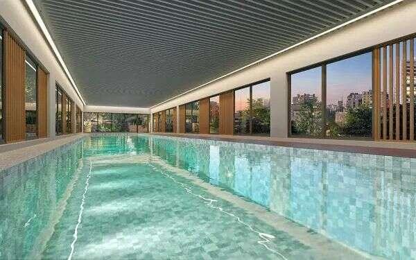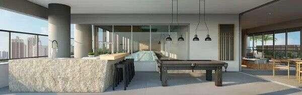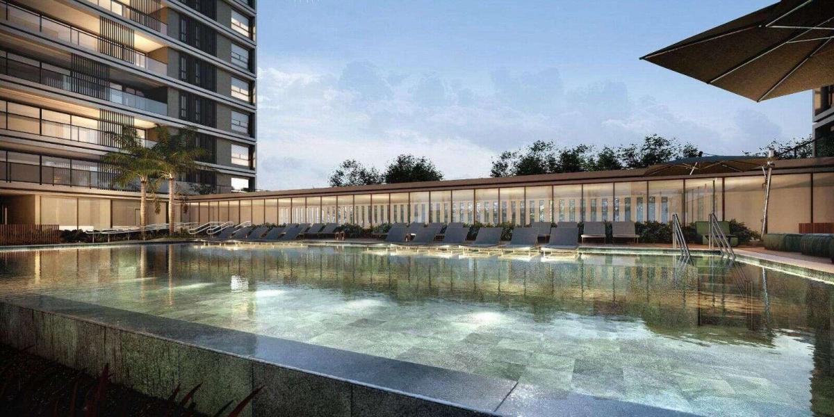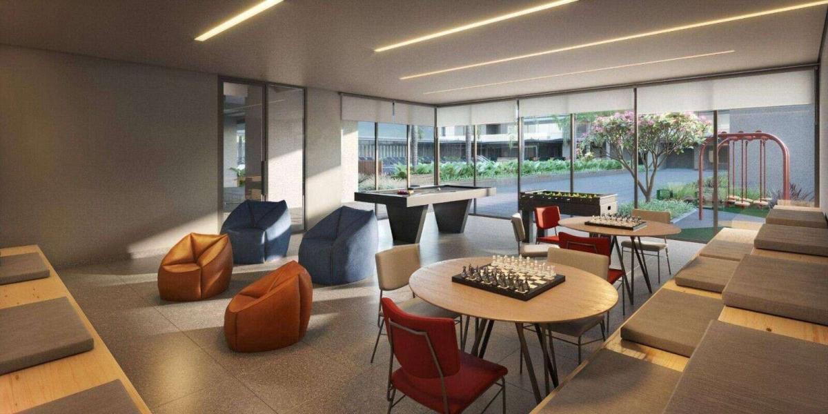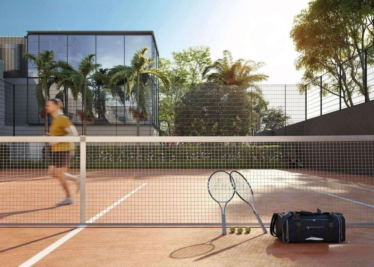 O condomínio oferece lazer completo com quadra de tênis, piscinas coberta e descoberta, academia, coworking e áreas de convivência que ampliam a experiência residencial para além do apartamento.