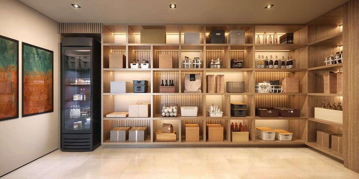 A planta foi cuidadosamente desenhada para oferecer uma separação clara entre as áreas social, íntima e de serviço. A cozinha, bem posicionada, permite integração ou discrição no dia a dia, enquanto a área de serviço conta com circulação independente, garantindo praticidade e organização.