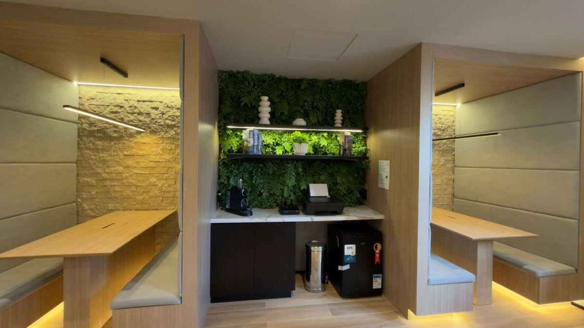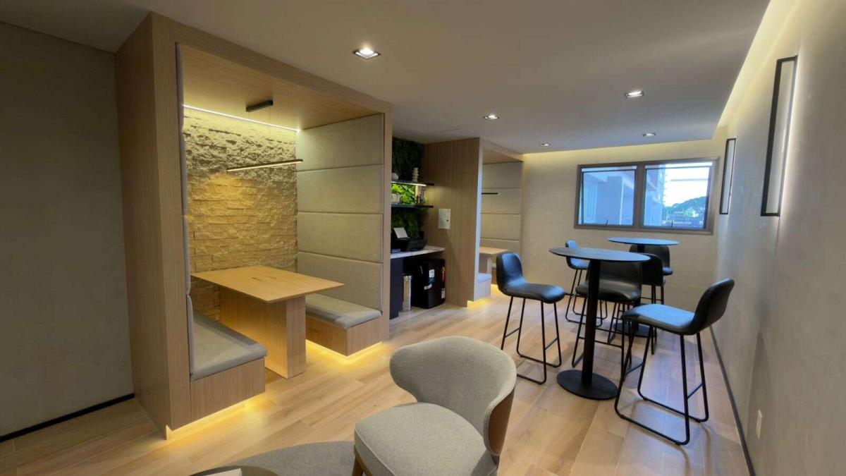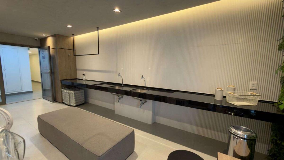 Studio novo com 28 m², totalmente mobiliado e equipado, ideal para quem busca praticidade com estética contemporânea. O ambiente é integrado e inteligente, com cama, armários planejados, painel para TV, bancada funcional para refeições ou home office, além de cozinha equipada com geladeira, cooktop, micro-ondas e marcenaria sob medida.
